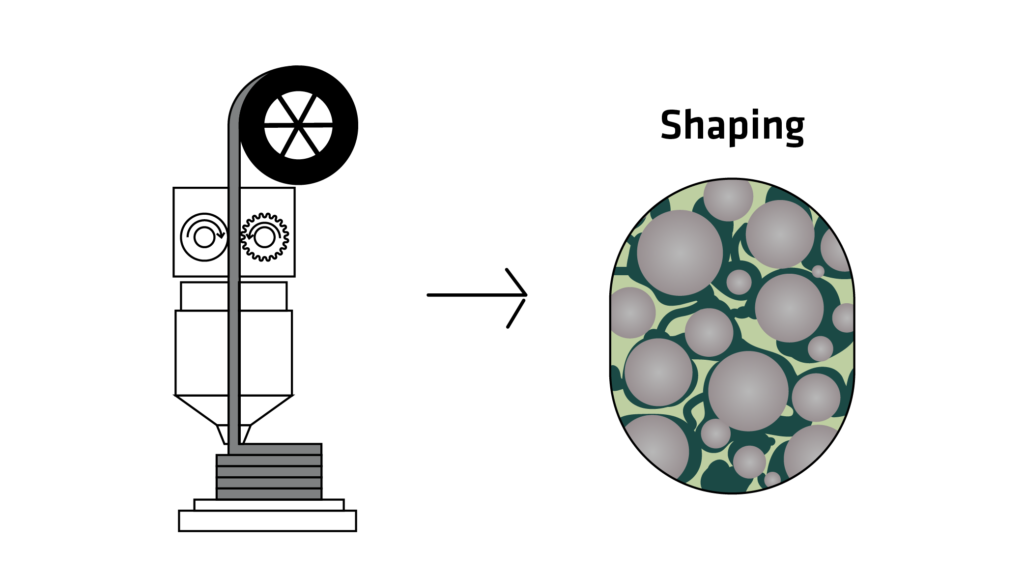 This filament, similar to regular PLA, is loaded into a 3D printer and used with FFF 3D printers. Instead of pure plastic, the printer layers a binder mixed with metal, which temporarily supports and positions the metal particles.