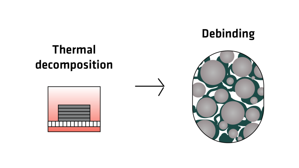 After printing, the part undergoes a heat treatment debinding process to remove plastic or wax binders from the “green part,” creating a porous structure for sintering, resulting in a strong, dense metal component.