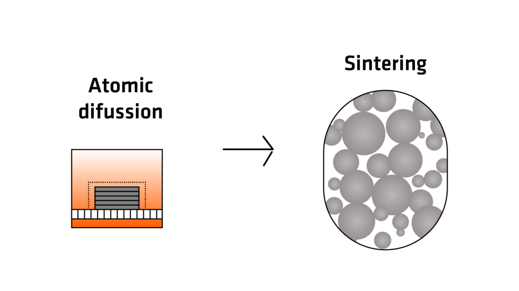 The printed part undergoes high-temperature heating, fusing metal particles into a solid, dense component, yielding a final product that is both robust and compact.